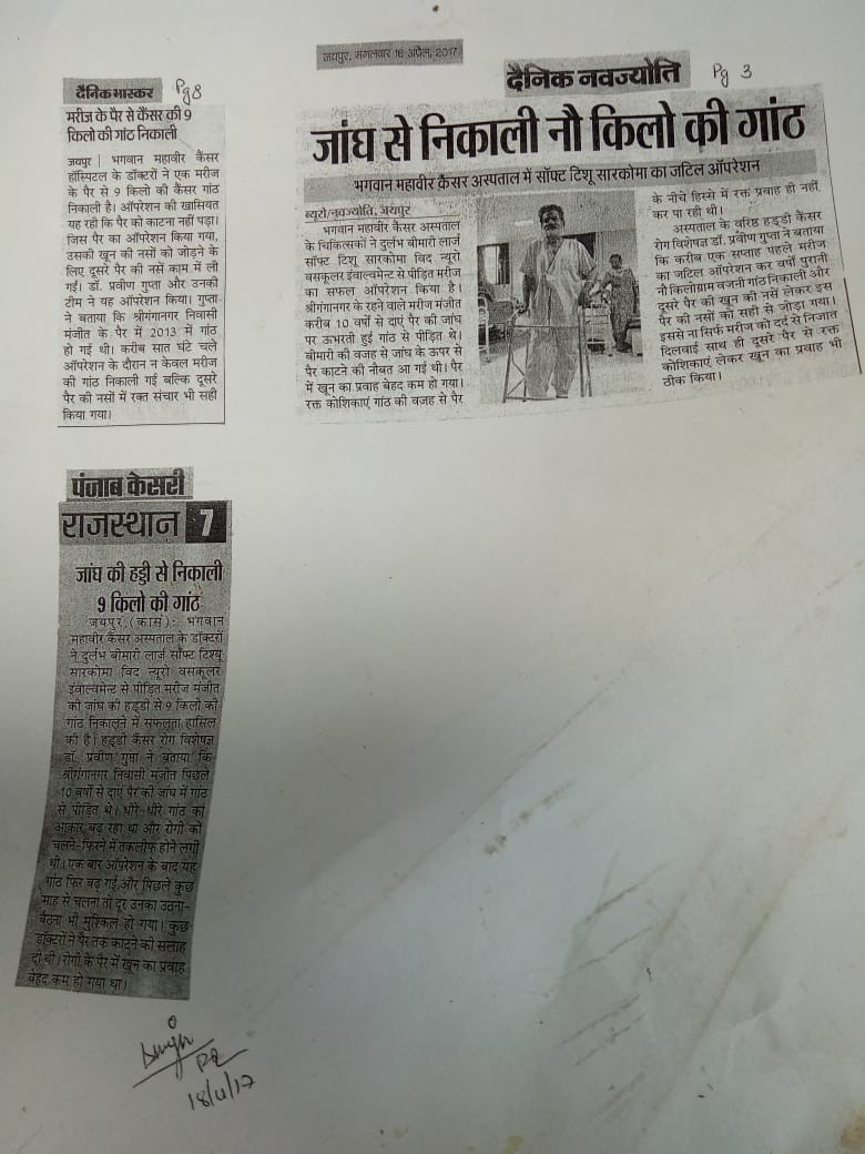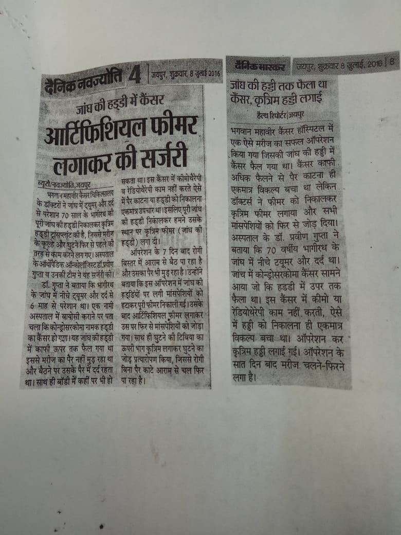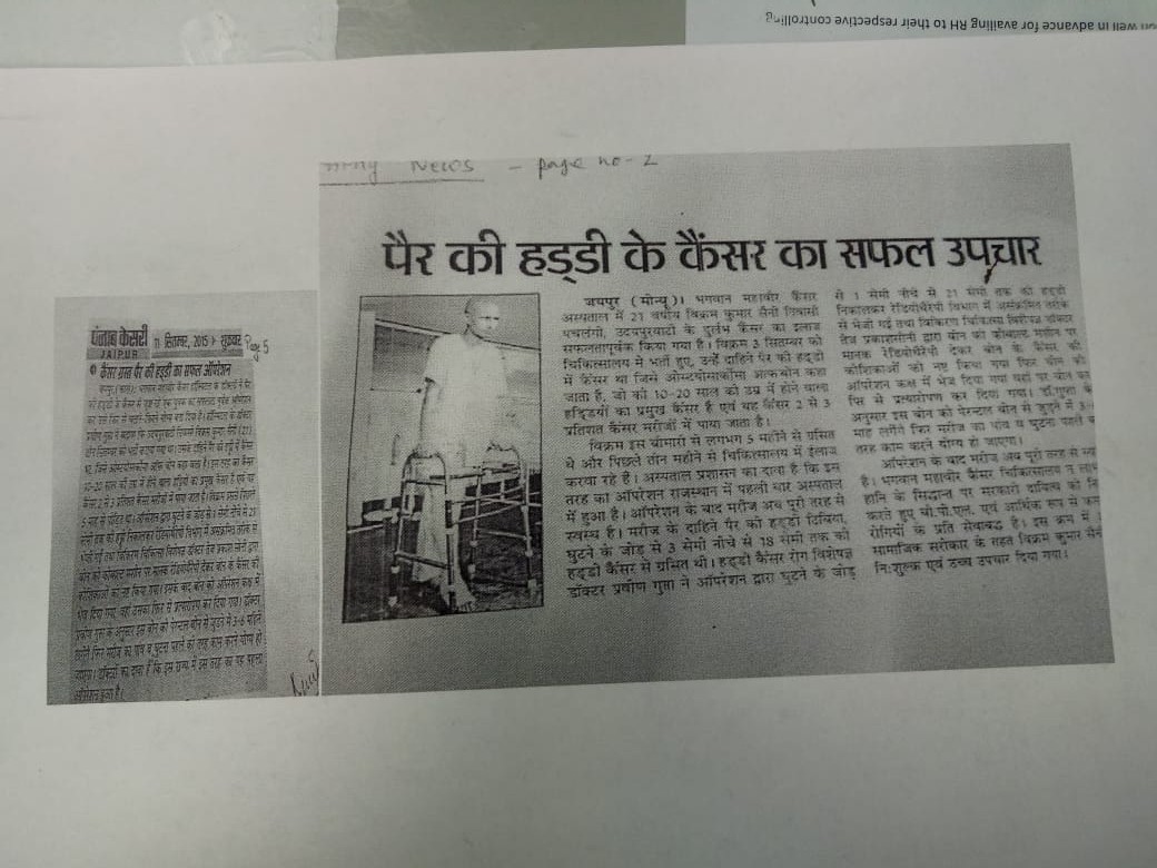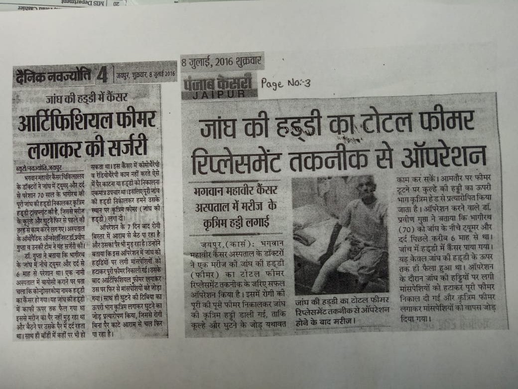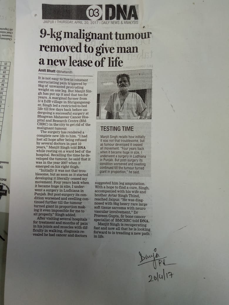 One more milestone surgery for bone cancer in Rajasthan at BMCHRC by our team. Ortho onco surgeon Dr Praveen Gupta and plastic surgery team Dr Umesh Bansal and Dr Saurabh Rawat